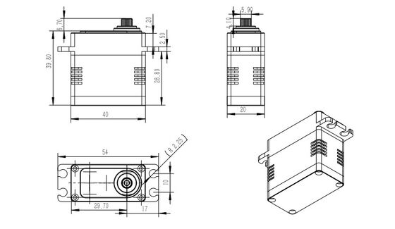 Con una frecuencia de funcionamiento de 1520ms/333Hz y un ancho de zona muerta de solo 3 microsegundos, el servo puede responder rápida y precisamente a las señales de control.